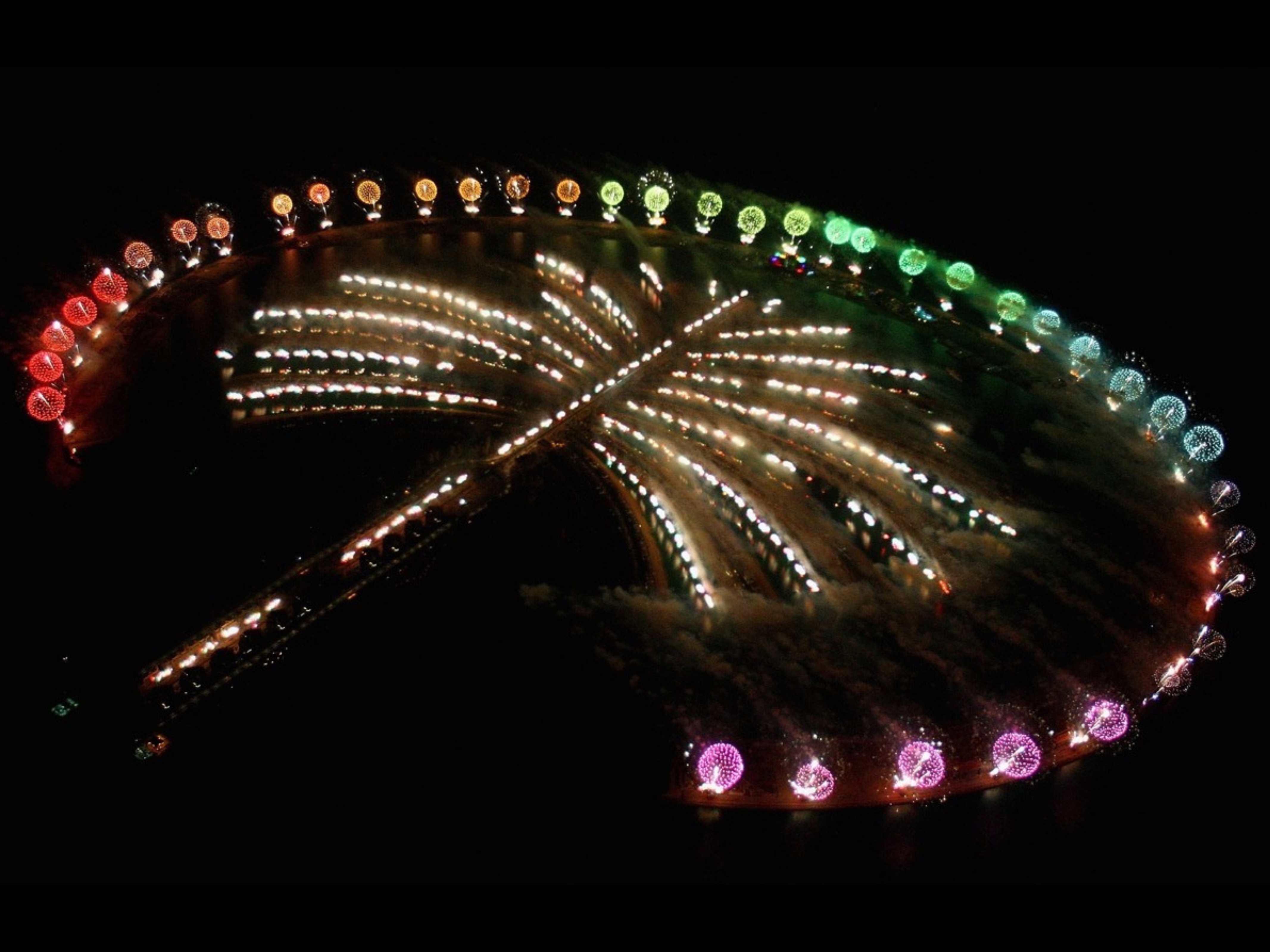 The finalé of the grand opening event was a 22 minute 'Illumination Sequence" featuring an originally-designed video projection across the entire facade of the Atlantis produced by industry veterans Edd Griles and Chip Rachlin. The powerful video projections, which told the story of the Atlantis, were integrated with an installation of high powered Syncrolites and pyrotechnic effects above and beneath the building. At the end of the Illumination sequence, Bollywood star Priyanka Chopra emerged on stage to unleash the world's largest-ever fireworks display - over 7 times larger than those seem at the Beijing Olympic Games - designed and executed by the world famous Grucci Family. The fireworks spectacular was executed over the Palm Islands' 43 KM of shoreline, illuminating the entire island with more than 100,000 specially designed pyrotechnic devices.