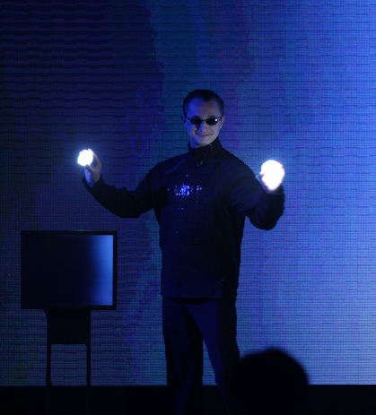 The event featured a carefully-scripted onstage presentation that combined the company Chairman's enthusiastic presentation of the products with performances by the world-renowned techno-illusionist Marco Tempest, who wowed the crowd with his interactive virtual magic.