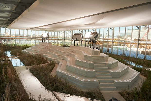 The decision was made to bring the show home – to the futuresite of the new Coach headquarters currently being built at 30th Street and 11th Avenue in the new Hudson Yards development. A large, openconcrete rooftop, located adjacent to the High Line and just a short walk fromthe new Coach tower, proved to be the ideal location to build an event spacethat would impress audiences and blend seamlessly into the natural beauty ofthe High Line.