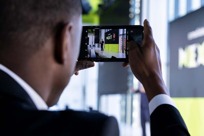 Guests received their first taste of technological innovation at registration, where they were welcomed by name on a reactive LED screen installation covering the full width of the entry wall. A large lunch café was created with a décor scheme that incorporated custom-built, ceiling-high steel LED frames draped with foliage to create smaller, intimate restaurant-style spaces that displayed both technology and nature.