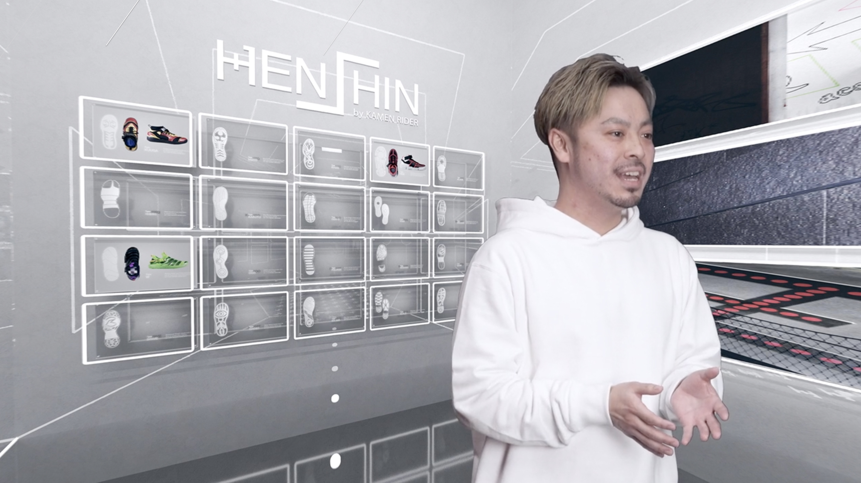 Bandai, with the help of Empire, was responsible for the brand's online launch with a unique virtual pop-up experience. Using Empire's customizable Virtual Platform, customers were transported to the powerful 3D futuristic world of HENSHIN. With just a click, customers had the ability to move around the digital space and access to immersive promotional videos and limited edition sneakers and fashion line-ups.