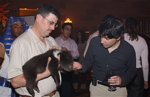 In addition to these activities, Empire provided outstanding catering in four large themed food stations representing the major regions of the world, Europe, Middle East/Africa, Asia and the Americas. Each station had an assortment of foods reflecting that region of the world and was decorated accordingly. A giant projection screen with a giant yellow border around it towered 24' above the event and served as a focal point for a presentation of NGC's amazing new programming and footage. And of course there was extraordinary lighting reminiscent of moving targeting lasers and an amazing, eclectic soundtrack that ranged from tribal drumming to techno beats.