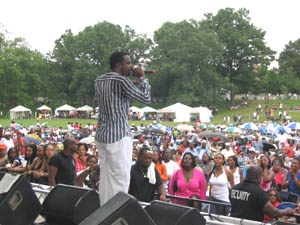 A couple of challenges that Empire had to overcome, was trying not to repeat artists, (after 10 years of presenting so many of R&B's top artists) and finding suitable new and older school R&B artists that appealed to the mature and the younger generations of R&B. Artists must also perform with live bands as no track artists, hip-hop or rap is permitted at this community event.Empire secured 14 bands for this years Rochester MusicFest including several local artists. Beginning with Friday nights 'Latin Night', regional local, merengue band La Linea opened the evening, and were followed by Puerto Rico's own local salsa legends, Puerto Rican Power Orchestra. Opening Saturday's line-up at 1PM, was local artist, 15 year-old Damaris Rivera, who performed a short but wonderful set of original songs, that included her current regional radio hit and also a beautuful tribute to Aaliyah. She set a great mood for the rest of the days line-up with a lot of local support and a soulful beginning to a weekend of R&B.Following Damaris, another local group PrimeTime Funk, kicked it up a notch with a full 45-minute set of covers of some of the best funk in the business. They also were very excited to open for one of the legends of funk The Brothers Johnson, who recently came out of the woodwork after 18 years of absenture.