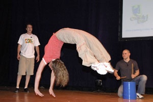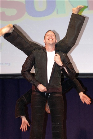 Leading entertainers such as New York City's percussion and hip hop dance troupe the Rhythmics, Antigravity's renowned hula hoop artist Anna Jack, basketball tricksters the Harlem Wizards, Velcro percussionists the Bang Group and international circus comedy sensation Karl Saliter were among the many artists who agreed to perform at this unprecedented gathering.Other featured acts included the ComedyCures Humor Ambassadors Slideshow Comics, vocal celebrity impersonator Rick Younger, blues harmonicist David Harp and crowd motivator MC Darrell and dancers who maintained high-energy throughout the show.Saranne Rothberg hosted the program with her ComedyCures signature remarks. Thirteen year old Star Search winner and Sony recording artist, Tiffany Evans brought the crowd to their feet with a soulful rendition of the song, "Tomorrow," and the world famous Harlem Gospel Choir sang a powerful and uplifting "Higher and Higher," as a finale leading the dancing crowd down the aisles.