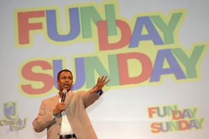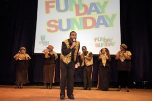 For the first time ever, all the children who lost a parent on September 11th, as well as children from schools neighboring the former World Trade Center and emergency service personnel families, were united for an afternoon of laughter, music and magic in a unique 90-minute interactive show called "FundaySunday," produced by Empire Entertainment.The show was created by cancer survivor and ComedyCures Foundation founder, Saranne Rothberg, and was sponsored by Rotary International. The matinee performance took place on a Sunday afternoon at the historic Town Hall in New York City.