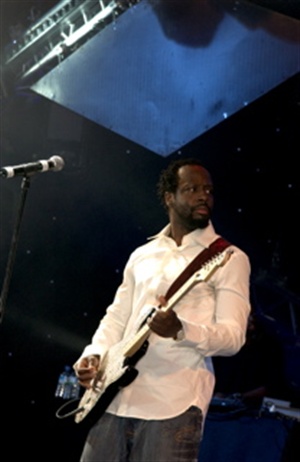 As the host thanked his family and friends and reminisced about his extraordinary fortunate life, an army of workers scrambled behind the curtains to reset the stage for the the next phase of the event - moving an entire orchestra and band set offstage and setting up a huge new stage set for the next performers. Just as the host concluded his remarks, he introduced his musically-talented grandson who stood onstage as the curtains parted with Wyclef Jean and his band. They performed a reggae version of "Hotel California" as the guests took to the dance floor and then Wycl