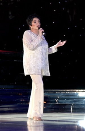 Next Natalie Cole stepped into the spotlight to perform "This Will Be" and "Unforgettable" to the awestruck audience.Bebe Winans then performed two songs including "It All Comes Down to Love" and the "Legends Theme" which he had first performed for Oprah Winfrey's Legends Weekend in Santa Barbara 4 months earlier.Then pianist Billy Stritch began the telltale piano intro to "New York, New York" as a skyline images came up on the screens and the great Liza Minnelli stepped into the spotlight - bringing to their feet an audience that included U2's Bono and REM's Michael Stipe among many others. Liza looked and sounded fantastic as she performed "New York, New York" and "Cabaret" before turning over the mic to the host to address the audience.