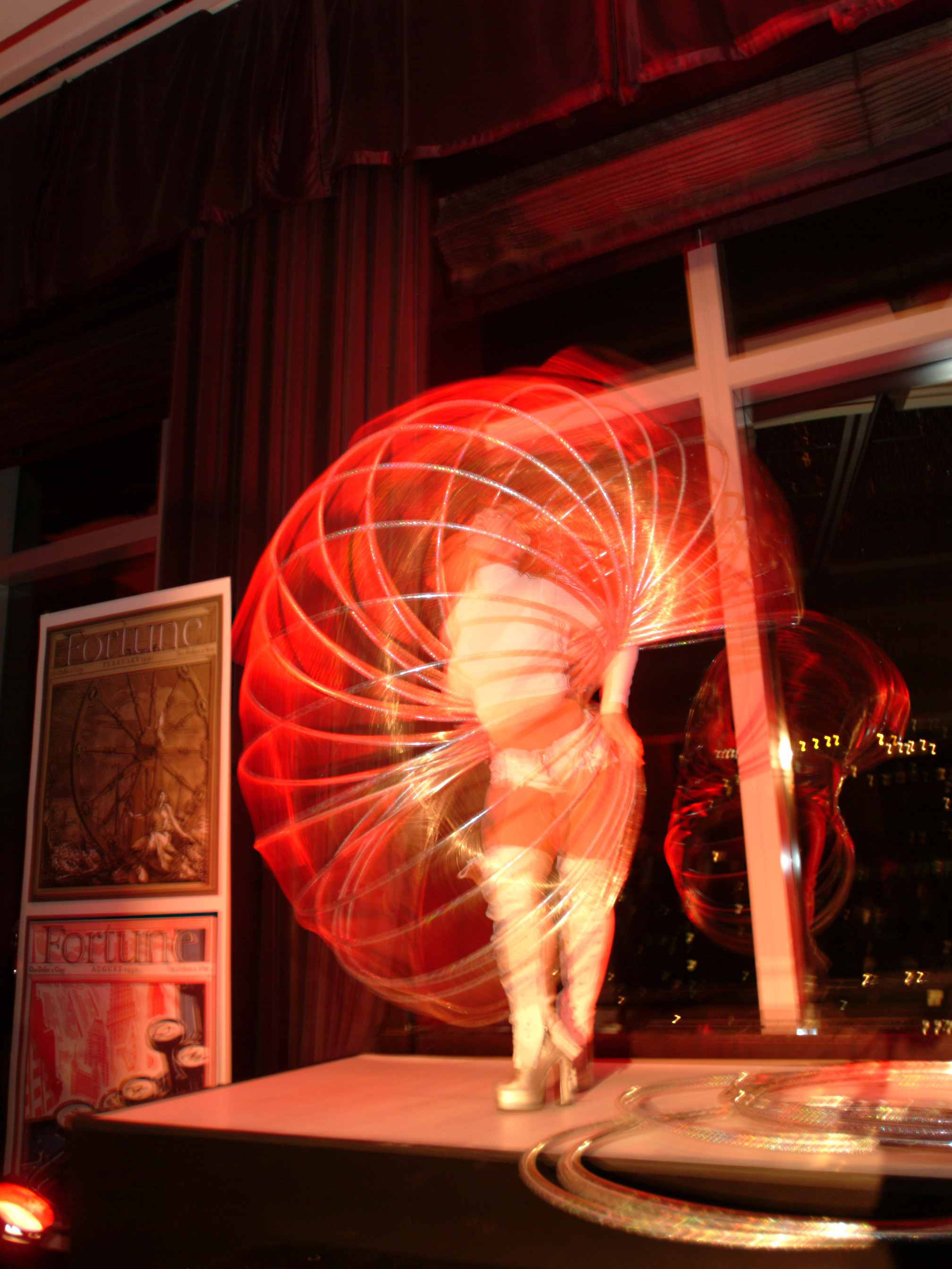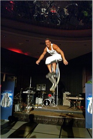 In addition, Empire installed and lit a series of standing displays depicting classic Fortune Magazine cover artwork and bountiful arrangements of calla lillies. The party featured music by the Stingers, a 10 piece R&B Motown band, and a series of performances by acrobatic / aerial troupe Antigravity®. Guests were amazed by their skill and flawless performances. The final Antigravity® performance segment led by the "famous jumping boots," segued into remarks from the evening's host to a dance set by the Stingers who kept the crowd on their feet.Towards the end of the party, Empire opened the doors to yet another section of the ballroom to reveal a Diamond décor themed lounge. All white lounge furniture, glowing cocktail tables, diamond inspired decorations and Fortune Magazine branded pillows were all draped in blue lighting to create a cool and modern ambience. To top it off, sexy world music DJ Donna D'Cruz spun an incredible set of dance music for two hours on her customized diamond studded DJ façade. For this event Empire provided all decor and design, lighting, staging, sound, talent booking and coordination, onsite logistics and production management.
