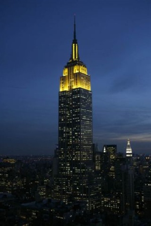 Then "The Simpsons" final stamp on NYC was revealed. Instead of glowing white, the Empire State Building lit up in a brilliant yellow to join in the celebration with an unprecedented, commercially-tied lighting of the iconic landmark. The Empire State Building also hosted a lighting ceremony and press conference in its lobby, where Homer flipped the switch to turn on the lights. As a finale to the day's activities, a party for FOX VIPs and The Simpsons Movie cast & crew was held on the 71st floor of the Empire State Building.