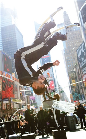 Viral Stunt in Times Square Featuring Acrobatic Group AntiGravity