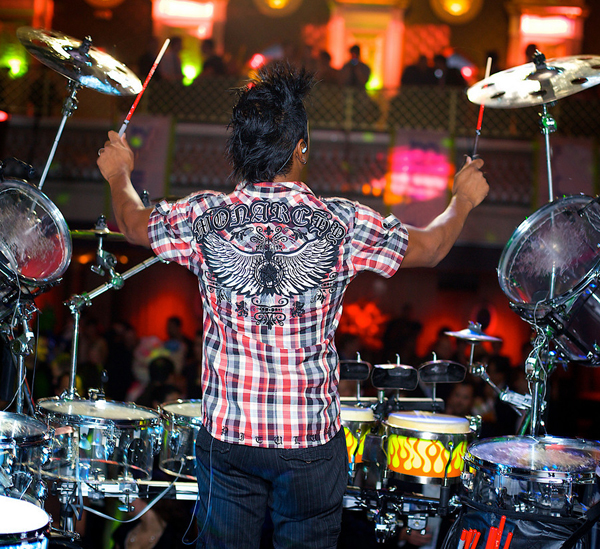 Working with the client's internal relationship managers, Empire quickly secured and contracted funky, up-and-coming hip-hop rocker Janelle Monáe to perform. Her dance moves tore up the stage, but she also found time to paint a picture and hand it to a lucky guest. As Janelle Monáe finished her hectic and eclectic set, a senior marketing executive took to the stage to announce a special surprise: the company’s new product was set to launch at midnight and this group of 500+ guests would be the first to own it. 100,000 watt DJ & drummer sensation DJ Ravi Drums joined the executives on-stage to provide a drum roll for the countdown to the midnight launch and then took over the party with a custom rendition of Black Eyed Peas' "Boom Boom Pow" featuring a lyrical reference of the client’s product. DJ Ravi Drums kept the party going well past two in the morning with his brand of high-energy drumming. Empire secured and provided technical and logistical support for Janelle Monáe and DJ Ravi Drums in addition to managing their performances and the flow of the evening.
