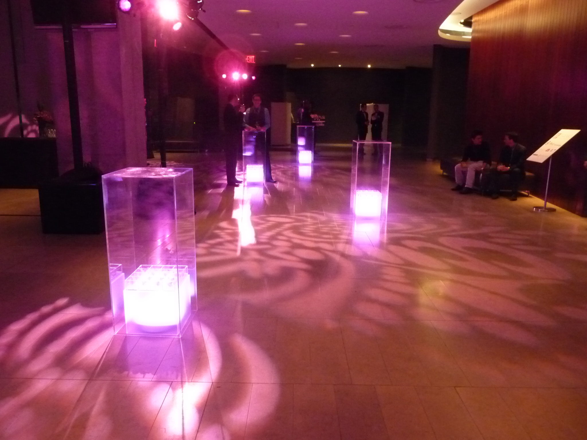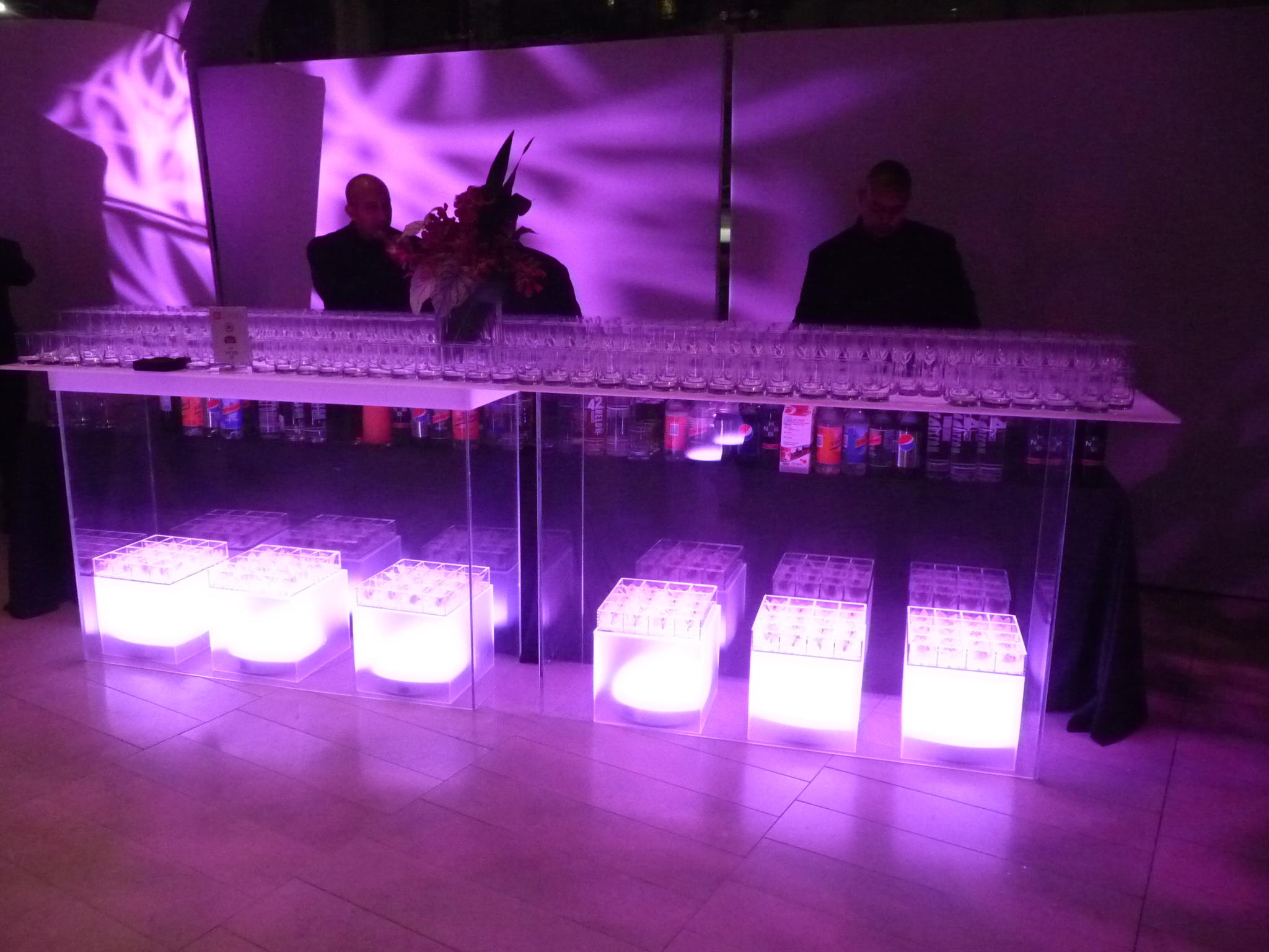 Guests received their first taste of technological innovation at registration, where they were welcomed by name on a reactive LED screen installation covering the full width of the entry wall. A large lunch café was created with a décor scheme that incorporated custom-built, ceiling-high steel LED frames draped with foliage to create smaller, intimate restaurant-style spaces that displayed both technology and nature.