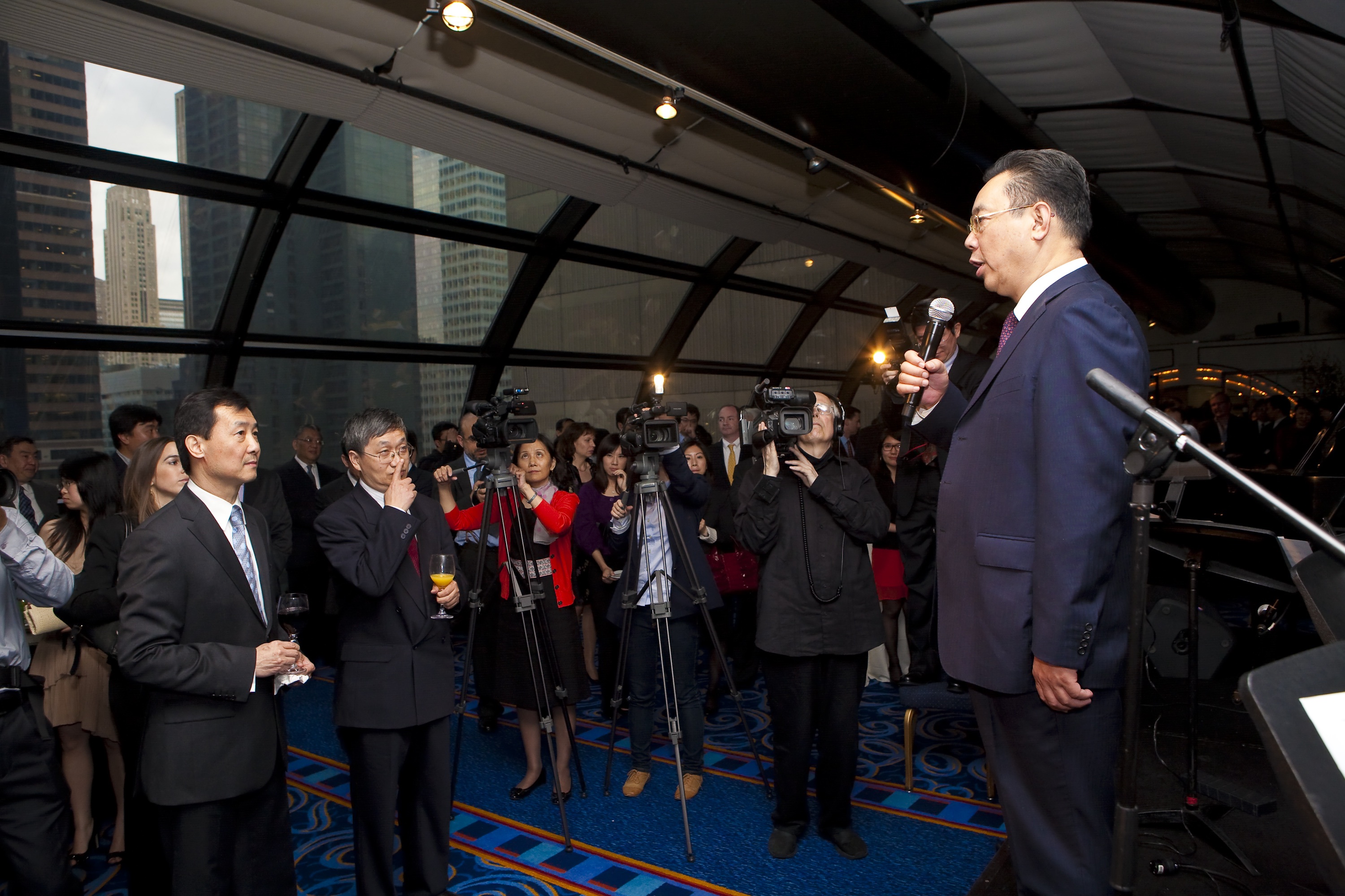 When the largest news agency in the People's Republic of China wanted to hold opening events for their new North American Headquarters in Times Square, they asked Empire Entertainment to produce a sophisticated launch party.In existence for 80 years, Xinhua News Agency operates roughly 40 domestic bureaus in China and 140 overseas offices across the globe. Xinhua owns more than 20 newspapers and a dozen magazines, and it prints in eight languages: Chinese, English, Spanish, French, Russian, Portuguese, Arabic and Japanese. In 2010, they launched their own news network "CNC World TV". For the New York launch, the festivities began after the Opening Bell Ceremony at the NASDAQ MarketSite. Empire produced a luncheon event at Xinhua's brand new offices overlooking Times Square. The event was attended by Xinhua executives from across North America and the world, including a delegation from the global headquarters in Beijing. Among the nearly 100 guests were high-level business and political leaders including Ambassador Peng Keyu of the Chinese Consulate-General in New York, Tom Gallo of the U.S. State Department Office of Foreign Missions, and President of the National Committee on U.S.-China Relations Steve Orlins. Following a brief cocktail hour, giving the guests a chance to explore Xinhua's state-of-the-art offices, attendees were greeted by North American Bureau Chief Zeng Hu. Remarks were also given by Ambassador Li Baodong of the Chinese Mission to the United Nations and finally from Zhou Xisheng, Xinhua Vice President and Executive Deputy Editor-In-Chief. The speakers then participated in a ribbon-cutting ceremony and champagne toast to Xinhua's future in New York and the world. In the evening approximately 200 friends, colleagues, and honored guests arrived at the Marriott Marquis Sky Lobby just across the street from Xinhua's North American Headquarters for a cocktail event. In addition to remarks from Zhou Xisheng celebrating the day's joyous occasion, a special performance was given by Huang Ruo and his Fire ensemble. Known internationally for his compositions which blend Eastern and Western musical conventions, Dr. Huang gave a rousing performance at the piano while accompanied by clarinet, violin, viola, and pipa (Chinese lute). Empire worked closely with Xinhua and their PR firm the Brunswick Group to design these events and ensure a smooth flow between remarks, dining, and other important moments in the program. Serving as overall event producer, Empire managed/coordinated all aspects of production including venues, lighting, staging, audio, video content, catering, catering staff, video documentation, design and décor, graphic presentation, security, and overall project management. In this unique venue, Empire coordinated between the in-house production team, external audio/video vendors, electronic news media, and building management to integrate the various technologies and production elements required to execute the first-ever production held in this private office space. Empire Entertainment is a leading event producer for international companies in New York City and around the world.