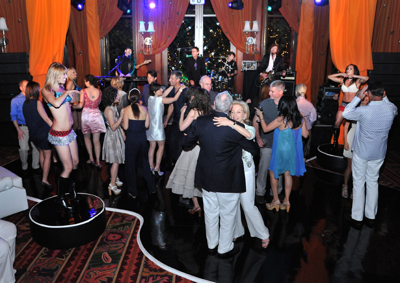 When a private client and her husband wanted to celebrate a fiftieth birthday with an unforgettable weekend in Las Vegas with friends and family, they turned to Empire as the overall producer for the project. With a VVIP guest list of over 125 attendees traveling from as far away as Europe & Asia, every aspect of the weekend would need to be planned with the utmost personalization and exquisite attention to detail. The expectations for the weekend would be nothing short of perfection. In the weeks leading up to the events, Empire worked closely with the client to design and send a unique invitation based on the Las Vegas skyline, supported by a visually-consistent registration / guest info website and travel staff offering a personal concierge touch. On Friday the weekend festivities began with airport greeters, personal greeting at the Encore check-in, whimsical welcome packages, an extraordinary gift bag including everything from engraved bottles of Johnny Walker Blue to iPods pre-loaded with the birthday girl’s soundtrack for the weekend. That afternoon, the hosts held an informal hospitality in their tower suite at the Encore. On the first night, guests assembled for an arrival dinner at SW Steakhouse where the entire outdoor patio overlooking the Wynn’s animatronic Lake of Dreams was seated in long, candlelit banquet tables. Following the elegant dinner, some of the guests retired to the hospitality suite for gambling lessons with Blackbelt in Blackjack author, Arnold Snyder. Other guests headed to XS Nightclub at the Encore where VIP tables and bottles of champagne on ice had been reserved to dance the night away.Saturday morning started early and guests participated in a myriad of custom designed activities for every taste. Activities included personalized yoga instruction with an instructor flown in from New York, golf at the Wynn Las Vegas Golf Club, private helicopter tours of the Grand Canyon and Hoover Dam, Humvee desert expeditions and guided hiking in the Las Vegas hills. Other guests relaxed at the fully-stocked pool cabanas reserved at the Encore Beach Club, went shopping on the Las Vegas strip or enjoyed spa & salon treatments.Saturday evening’s event began with over 100 guests being treated to a performance of The Beatles LOVE by Cirque de Soleil at the Mirage Hotel. Guests were then transported back to the Alex Ballroom at the Wynn for the Saturday night big bash - the centerpiece event of the weekend. Working closely with the client, a major art collector and philanthropist, Empire transformed the elegant Alex Ballroom into her ‘magical, bohemian chic’ vision. All of the formal furniture in the indoor ballroom were replaced with contemporary furnishings grouped around a custom-designed black lacquer dance floor and main stage dressed in fabrics. The outdoor terraces were surrounded by over 200’ of high topiary covered with twinkle lights that glowed in the desert evening and lit the comfortable terrace lounge seating as well as the single malt tasting station and cigar areas. Exquisite crystal votive candle-holders and floral designs featuring a combination of feathers and flowers complemented all of the individual rooms’ aesthetics. The menu for the evening featured all of the couple’s favorite foods including everything from raw seafood bar and sushi stations to southern fried chicken and Asian specialties from Hot & Juicy. Many of the side rooms and wine closets of the ballroom were transformed into activity areas including henna and temporary tattoo stations, a photo booth, a karaoke lounge and even a dessert buffet that later became a pole-dancing nightclub.On the stage Empire presented a program custom-designed to the birthday girl’s tastes. In addition to toasts, remarks and a hilarious speech by a fictitious art consultant supported by a slideshow presentation, the evening featured non-stop music and entertainment. DJ’s Andrew Andrew spun a playlist of the couple’s favorite music via iPads, allowing them to control the music from the stage, the dance floor, or even the bar. The event featured live performances by the Australian Bee Gees Revue and the Funky Monks, the Red Hot Chili Peppers tribute band. Guests remained on the dance floor surrounded by Go Go dancers well past 4:00AM and adorned themselves with costumes and props provided specifically for the evening’s festivities. The next morning began with a whimsical ‘Hangover Brunch’ in the Encore’s Sinatra Restaurant at which centerpiece bowls of sunglasses, Alka Seltzer, aspirin, Emergen-C and other hangover cures were served. On their arrival at the brunch, guests were amazed to receive a printed & bound photo book and USB credit card featuring all of the photos of the previous night’s events that had ended only hours earlier. The day continued more activities, guest departures for most and a straggler’s dinner at Rao’s Restaurant. Empire’s responsibilities for the program included concept and agenda development, hotel room contracting and coordination, invitation, website and collateral design, RSVP tracking, guest communications, guest ground transportation, welcome packages, meal functions, classes, excursions and activities, shows, pool cabana and nightclub reservations, menus and catering, entertainment as well as all event design and production. With the exception of the client, their extraordinary staff and the outstanding Encore & Wynn hotel team, Empire provided all personnel to manage and execute the project onsite. The net result of the weekend: an immensely happy client and a rewarding experience for all attendees and participants. The client feedback was best captured in the following email from the client’s executive assistant: “The e-mails that [the client] is getting back on the event are over-the-top, ridiculously positive. Many of them read like unbelievable infomercial testimonials, others like they had a spiritual transformation, all of them 20