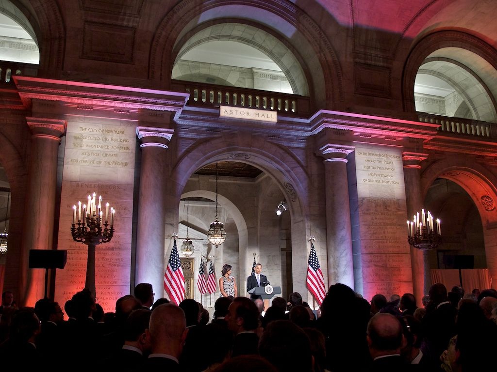 Every year, the President and First Lady of the United States host a reception in connection with the United Nations General Assembly in New York City. The event is attended by heads of state from around the world and is a keystone annual event in American diplomacy. This year, the event was held in the iconic New York Public Library.The distinguished guest list, necessity to observe diplomatic protocol in every detail, and extraordinary security precautions imposed by a host of agencies make the project one with many unique challenges. On the night of the event, heads of state, foreign ministers and other high profile guests arrived at the Library in a tightly-choreographed ballet of over 100 individual motorcades. Guests were met at Library entrances by an Honor Cordon representing all of the United States Armed Forces. Once inside, guests moved into a cocktail reception in the McGraw Rotunda and Edna Barnes Salomon Room where their conversations were accompanied by the United States Marine Band’s string ensemble.