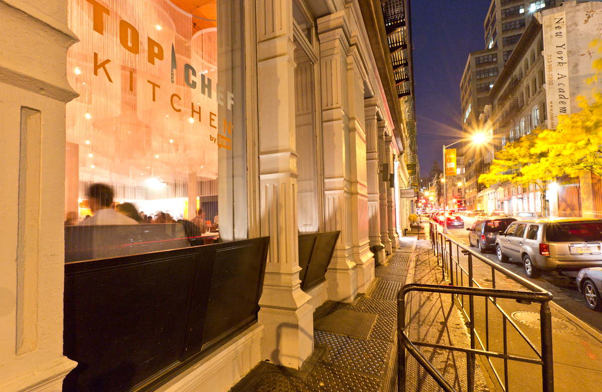 In Fall 2012, Bravo’s Consumer Marketing team turned to Empire Entertainment to open a 5-week, limited run restaurant in NYC for the Emmy Award and James Beard Award-winning television series Top Chef. The ambitious undertaking of designing, building and running a fully operational restaurant, aptly named Top Chef Kitchen, was a first for Bravo and Empire.The process began with scouting for the ideal space in Manhattan. Requirements for the space included that it be in an upscale and accessible neighborhood, have a large functional kitchen and a main dining room that could be completely remodeled in the Top Chef aesthetic as well as accommodate 100 diners per seating. Through Empire’s contacts with real estate brokers and local restaurateurs, Empire was able to find the perfect location -- a restaurant with 15-ft high windows in a landmark building nestled in one of Manhattan's trendiest neighborhoods - TriBeCa.