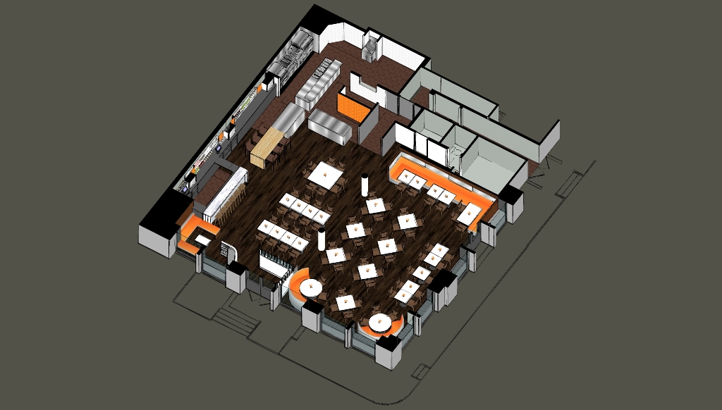 Next up, Empire and Bravo were tasked with designing and building the restaurant in just 10 weeks -- an unheard-of feat in the restaurant industry. Bravo’s consumer marketing team and Empire's production team worked quickly with m-USE, a trusted architect partner, to interpret the Top Chef brand in a contemporary Manhattan restaurant setting. The extensive demolition involved stripping down the interior to a clean box and opening up the kitchen so diners could watch the chef’testants in action. Renovations transformed the bare space into a sleek and sexy dining room featuring Top Chef’s bright orange accents playing against steel grey and dark walnut. The updated "open kitchen" featured gleaming white tiles and shining steel equipment. Above the heads of guests in the dining room, an ethereal “cloud” of white string was hung as a focal design element. Each and every detail, from furniture, lighting and bathroom fixtures to each piece of china or glass, was scrutinized and selected specially for Top Chef Kitchen’s 5-week limited duration. Brand new custom tables, chairs and upholstered banquettes filled the room just days before the grand opening.