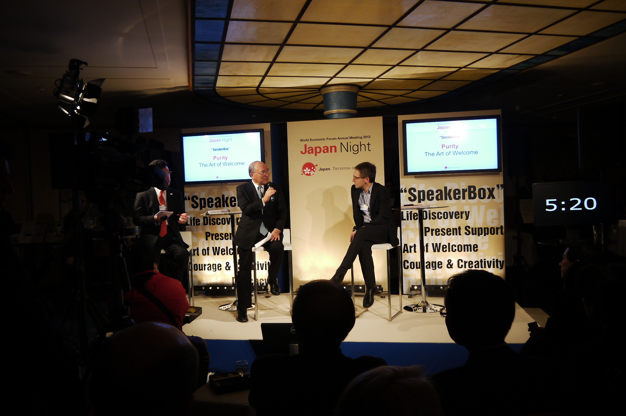 In January 2013 Empire Entertainment’s Tokyo-based Asia Division was honored to serve as a producer of a series of keynote speaker sessions hosted by the Japanese Prime Minister’s Office (Kantei) for the World Economic Forum (WEF) Annual Meeting 2013, otherwise known as the DAVOS meeting.The sessions, entitled “SpeakerBox” were the Japanese Prime Minister’s office’s answer to programming a “Japan Night” event, an evening organized to accommodate the forum attendees. For this amazing event, Empire was responsible for the core elements such as content producing and stage directions. Everything from titles, themes, copywriting, speaker liaison, stage settings and production were managed by the Empire team. We also had the honor of working directly with the Japanese Prime Minister, Mr. Shinzo Abe, to help produce his video speech on the subject of Japan’s future and its Vision in English, which appealed to the DAVOS audience. In addition to fulfilling the audiences’ appetites with wonderful Japanese delicacies such as freshly prepared Sushi and Bento, the attendee’s minds were also stimulated by the innovative and thought-provoking ideas shared by some of the world’s greatest thinkers including the following:Mr. Yasuchika Hasegawa (President and Chief Executive Officer, Takeda Pharmaceutical Company Limited)Prof. Muhammad Yunus (Chairman, Yunus Centre Nobel Peace Prize recipient)Ms. Sadako Ogata (Former President, Japan International Cooperation Agency)MISIA (Japanese Singer / Official Supporter of JICA-TICAD V)Mr. Akira Oshima (Honorary Executive Chef, Japanese Restaurants, Hotel Okura Amsterdam)Ms. Yoshiko Ueno-Mueller, Author and “Sake Samurai”Mr. Atsutoshi Nishida (Chairman of the Board, Toshiba Corporation)Mr. Ian Bremmer (President and founder of Eurasia Group)Mr. Yorihiko Kojima (Chairman of the Board, Mitsubishi Corporation)Mr. Klaus Schwab (Founder and Executive Chairman, World Economic Forum)Empire is proud to serve governments throughout the world with creative and production services for high level thought leadership forums and conferences and is a leading producer of Head of State level events.