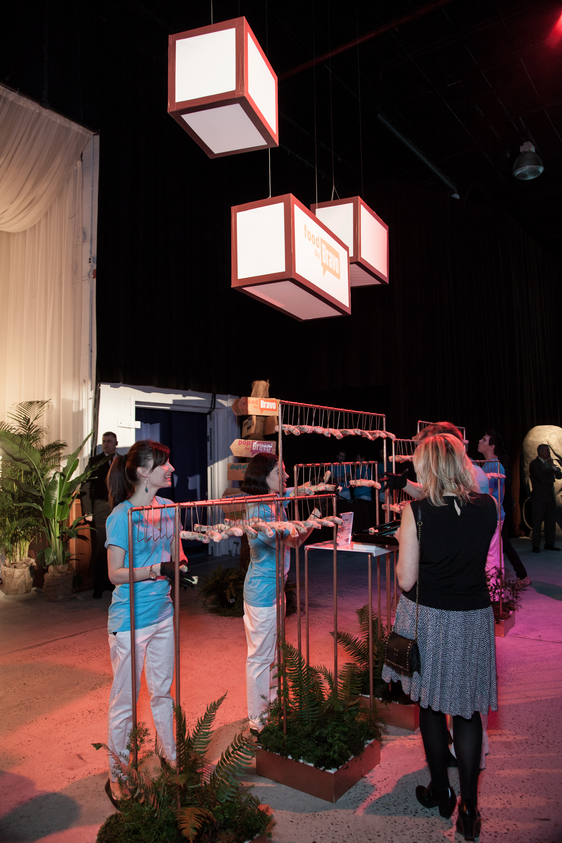 Guest interactions included a custom "Real Housewives" video for which guests recorded their own sassy voiceover and video to be craftily edited into the opening credits of "The Real Housewives" city of their choosing. Guests could also get their hair and makeup done under the watchful eye of Tabatha Coffey, consult with Patti Stanger on their love lives, upload a gif of themselves styled by Brad Goreski and shot with the Shah’s, or get a drink served by Jax and Tom, the bartenders from "Vanderpump Rules." Pinch Catering passed hors d’oeuvres throughout the night and set up stations with a delectable assortment of rice paper rolls suspended on copper wires, fresh cut sashimi and juicy bao-style buns filled with salmon, beef or vegetable tempura.