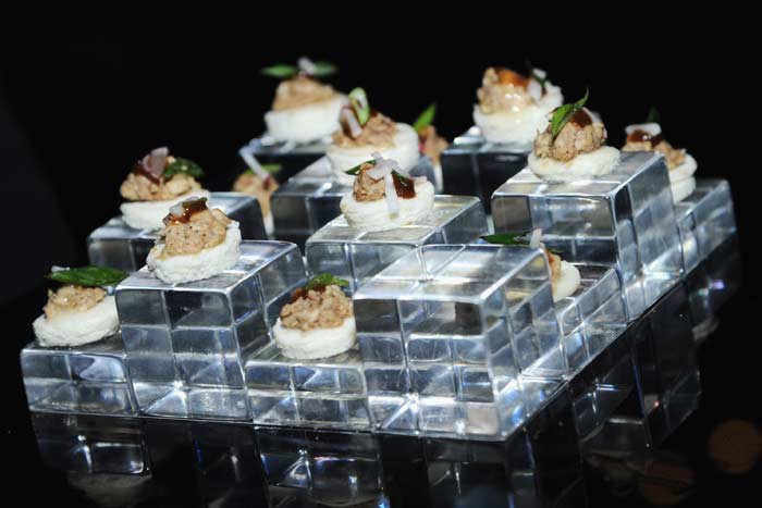 The final stop through the AMC network brought guests in to a “functioning” meth lab, where workers in yellow Tyvek suits prepared the drugs on an industrial scale and then smashed up and bagged blue “meth” rock candy for guests to take home with them. In between each space, guests were served cocktails and hors d’eouvres, and had the opportunity to enter the main, central party space to mix and mingle. Here, the message was simple: AMC, Something More. Tufted black leather couches with gold detailing, black carpet, and 100’ high ceilings with dramatic uplight set the tone of the affair. An abundance of food stations from steak carving to dim sum offered guests a multitude of delicious culinary options. In this main space, AMC President and General Manager, Charlie Collier led a brief presentation stating: “We just have two goals in mind—celebrate (our) brand and thanking you with a real AMC experience.” Following the presentation, the stars of each show descended upon the crowd to converse with guests and partake in numerous photo ops.