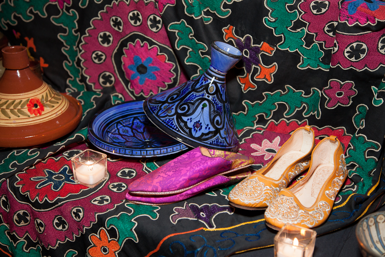 Draped fabrics in blue and purple jewel tones created a sultry setting for Morocco’s souk filled with antique colored glass lanterns, pottery, glasses and rugs. Guests relaxed in the hookah lounge and received henna tattoos and haggling lessons while Moroccan musicians played traditional instruments accompanied by belly dancers.Watery blue LED lighting transformed the central bar area into the Mediterranean, perfectly tying in all four countries.