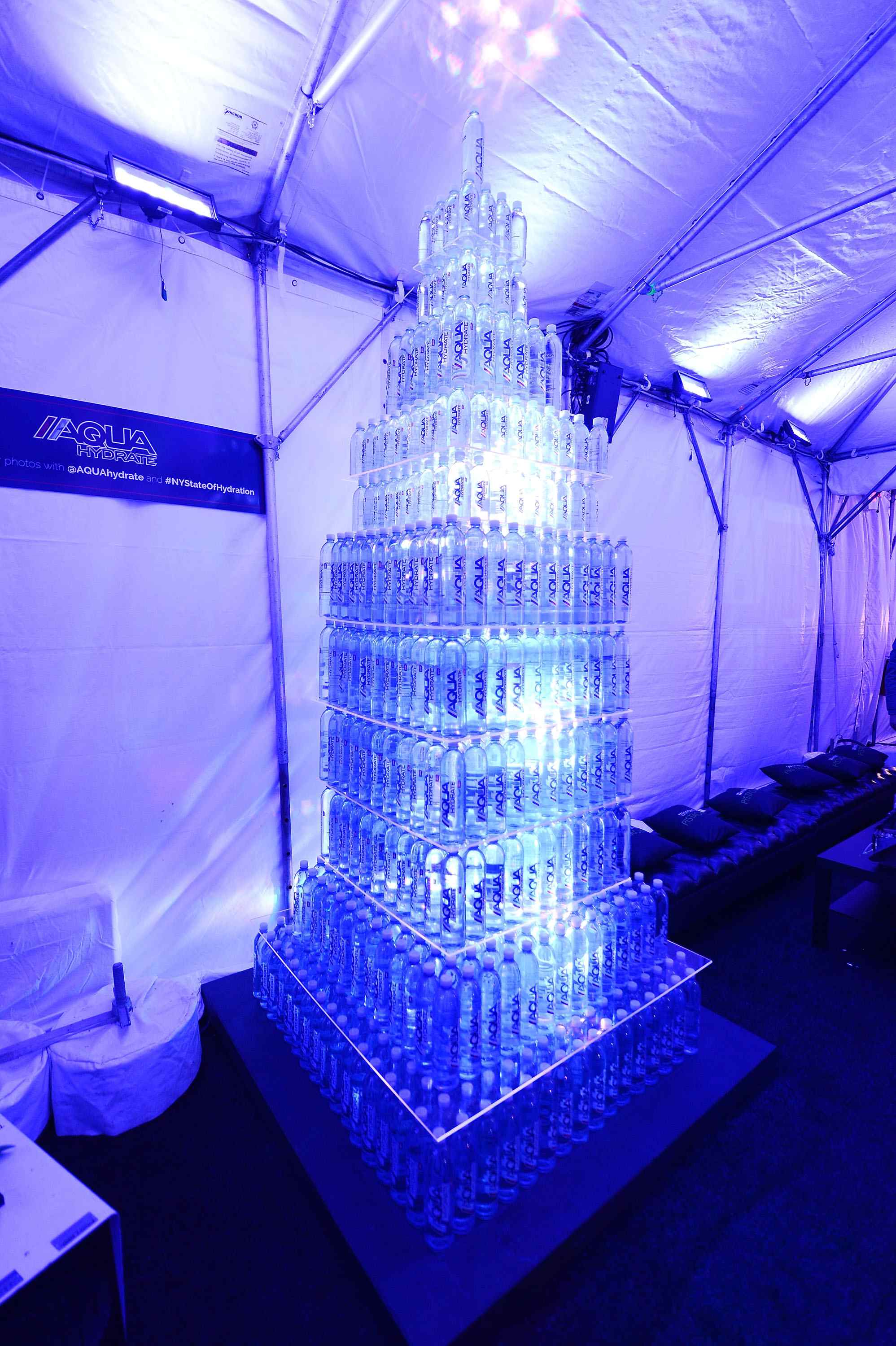 In contrast to the urban event space, we worked with party sponsor Heavenly Resorts in Lake Tahoe to create a ski-resort oasis in the foyer. Complete with snow covered Evergreens, “trail map” ice luge, shot skis and a snowboard bench, we also built a ski-lift chair-inspired photo booth for guests to share. Most of the other sponsors were incorporated into the NYC theme with an Empire State Building replicated from AQUAHydrate bottles, City Maps to pin your favorite place to drink Patron, and a chandelier of starlit Patron bottles. Other sponsorships included Wonderful Pistachio’s dedicated lounge, with delicious pistachios, Patron Bars, Touch giftbags and Redbull’s DJ rig and product.