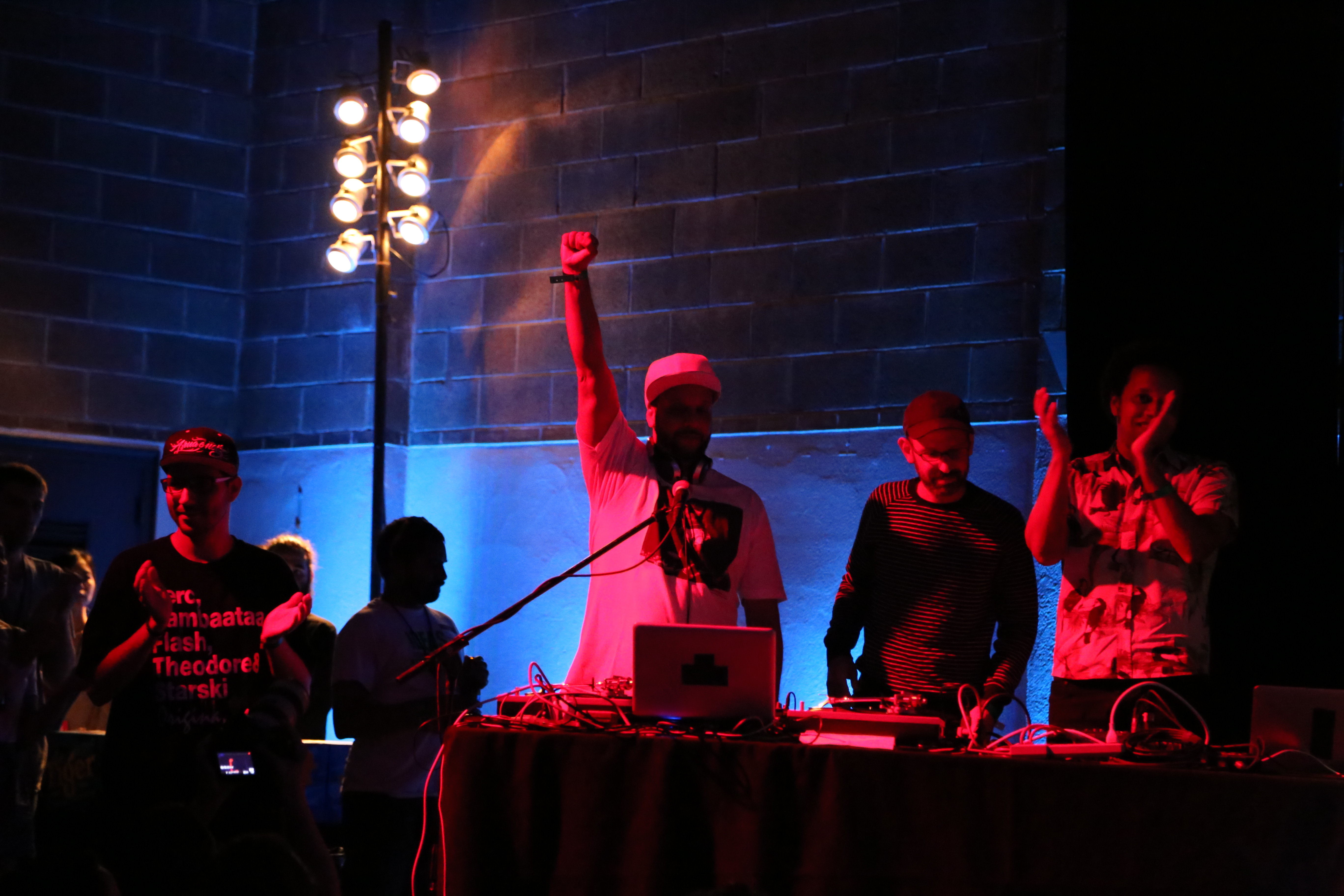 Day two utilized NoLIta's Old St. Patrick's Cathedral Basilica and Aula (aka "the old gym"). In the Basilica, the Municipal Art Society, Architizer: Pitching the City presented five original projects representing the next big idea for cities, followed by a late-night screening of The Dent by Basim Magdy. In the Aula, a Performative Conference in Nine Acts ensued with an unforgettable opening by Jordi Enrich Jorba wherein guests entered through a repurposed hot-air balloon. The night commenced with Bob Holman emceeing an evening of spoken word by artists like Penny Arcade, dance battles by Battlefest, and immersive video and sound installations by Ursula Scherrer.