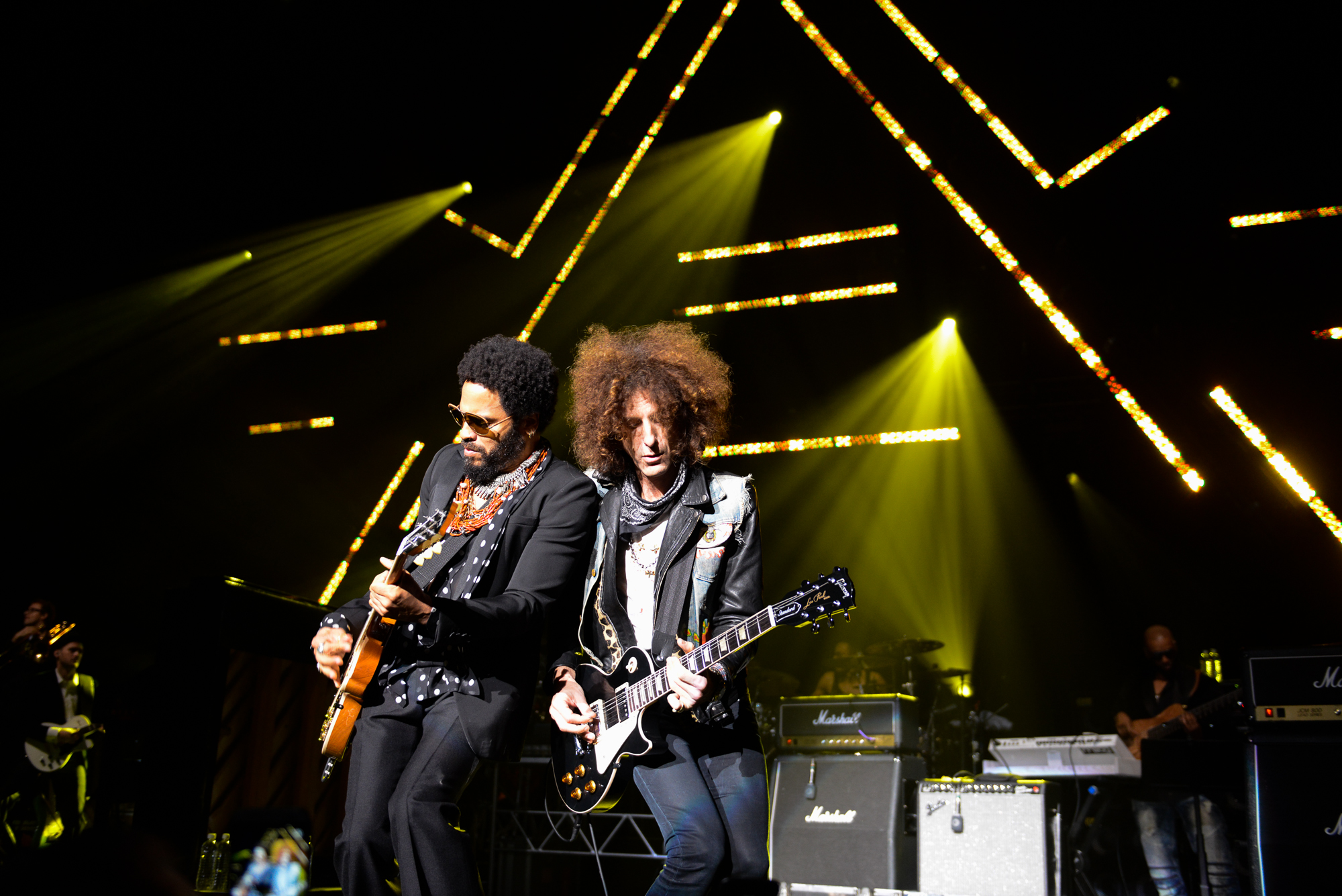 Grammy Award-winning rocker Lenny Kravitz took the stage next, pumping up the crowd with “Let Love Rule,” “American Woman” and “Are You Gonna Go My Way?”