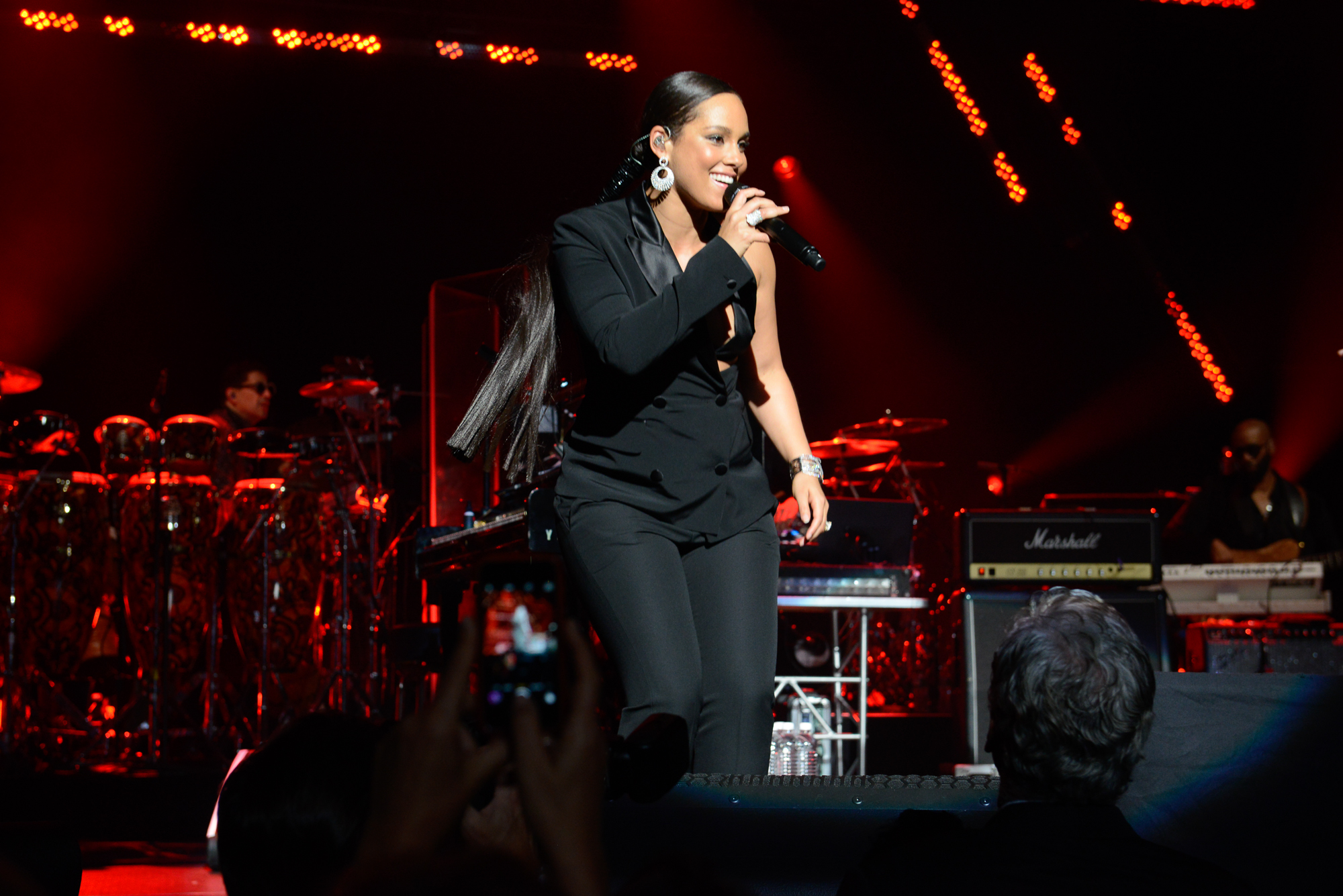 Neo-soul duo LION BABE joined Keys to open the concert with an old school classic, “Tell Me Something Good.” Rapper Wale then came out to perform “Lotus Flower Bomb,” segueing into a duet with Keys on “What You Won’t Do for Love.”