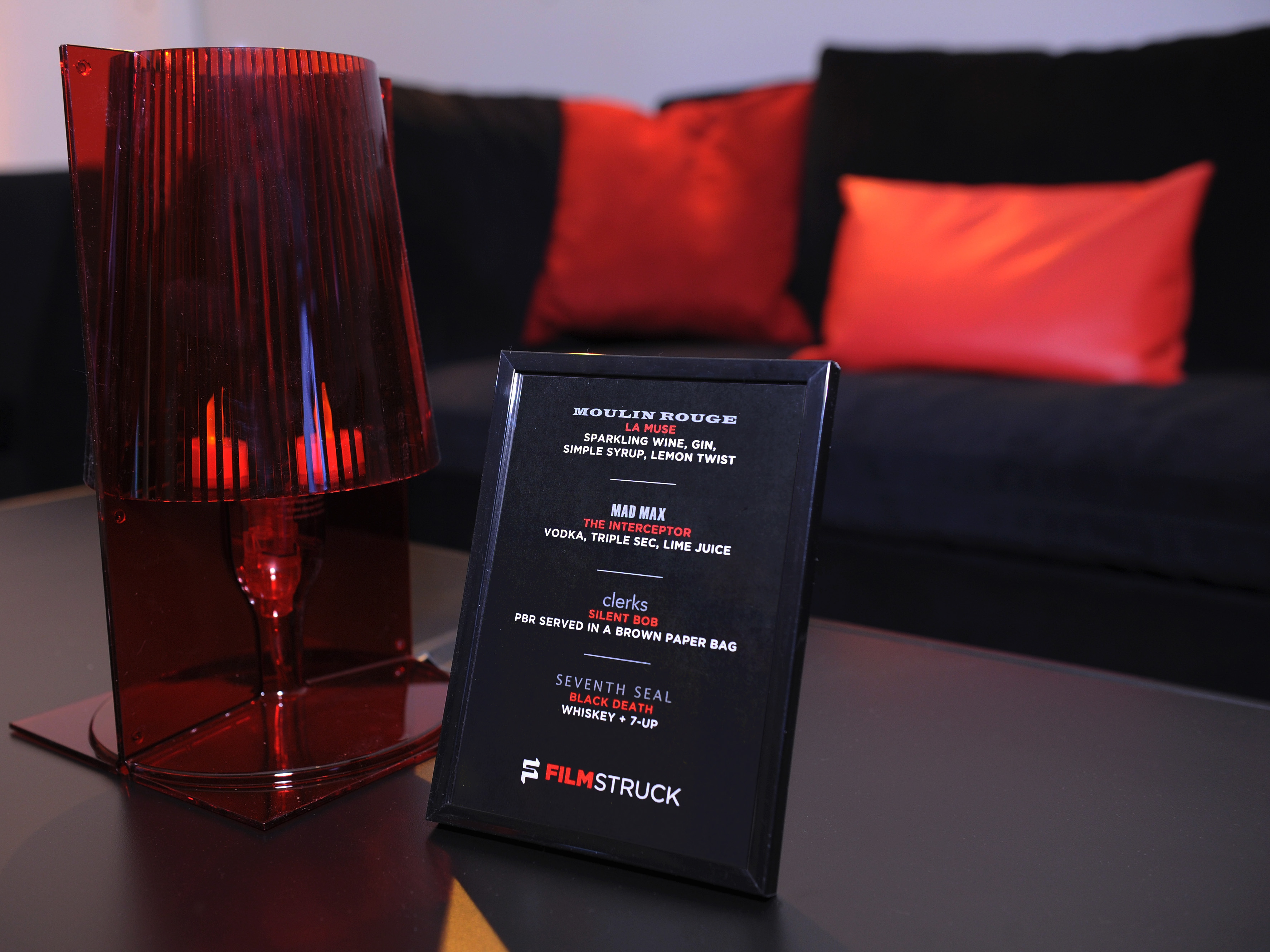 Each vignette had its own custom cocktails and Turner, FilmStruck, and Criterion Collection executives delivered brief welcome remarks in front of a 20’ LED wall displaying footage from some of the FilmStruck titles. Guests also utilized a series of tablets to navigate and explore the FilmStruck app in comfortable living room furnishings, driving home the message that these films are now available in the home.