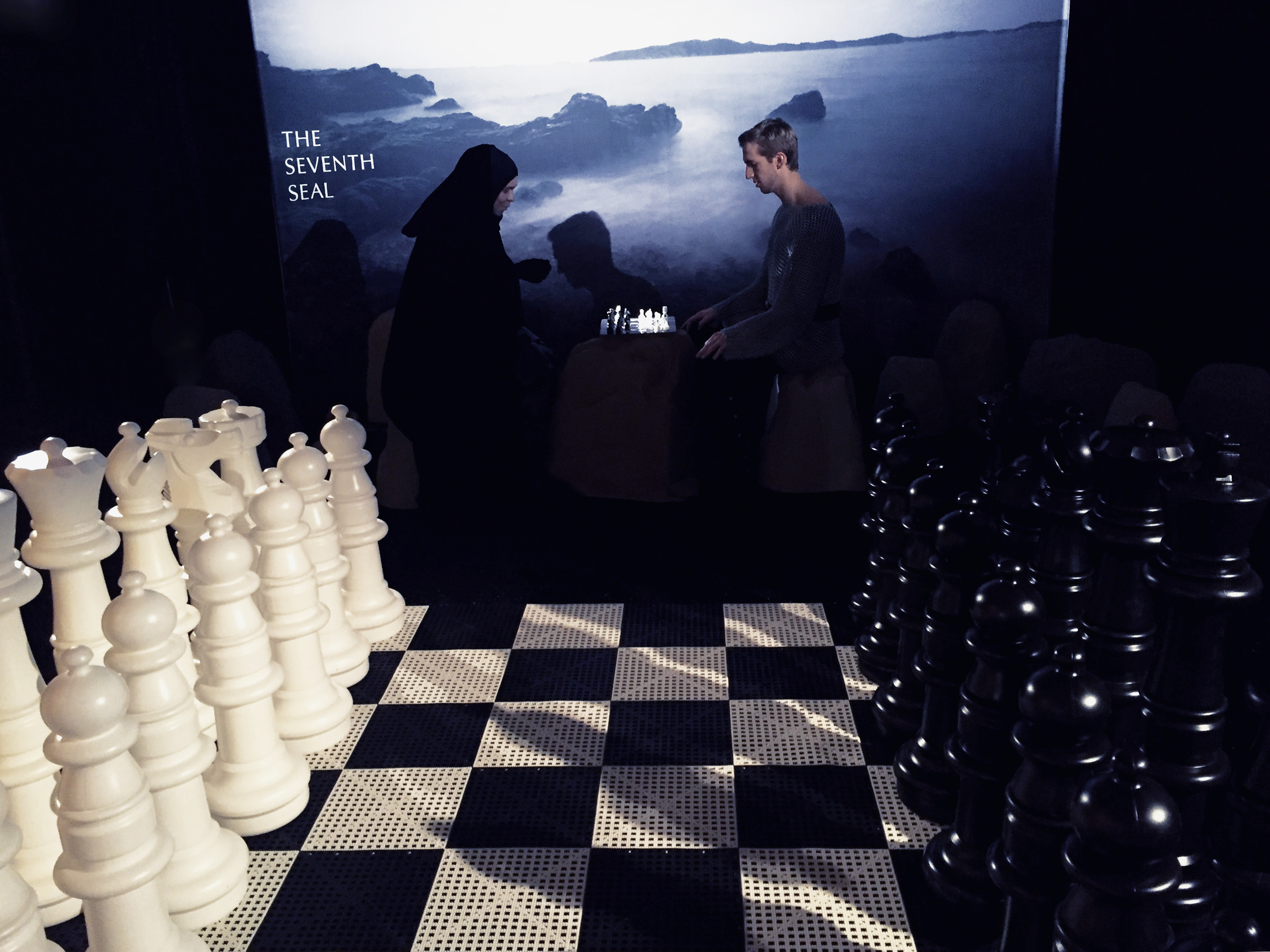 To depict Ingmar Bergman’s The Seventh Seal (1957), Empire reimagined the film’s iconic “chess match with death”. The brooding black and white sea was the backdrop as two actors embodying death and the knight played an infinite chess match. Guests were able to participate in their own game with an oversized chess board directly parallel to the deadly match.