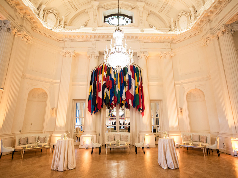 Empire’s Washington DC-based Senior Producer toured the city with CMS to find a perfect venue, a classic venue representing both Washington D.C. and the United States. We chose the Organization of the American States, one of the oldest and most beautiful buildings in Washington right off the National Mall with views to the Ellipse and the White House front Lawn. Typically this is invitation-only, stand up reception hosts 500 guests. This year’s rolling reception counted nearly 800 throughout the evening with guests from all over the world.