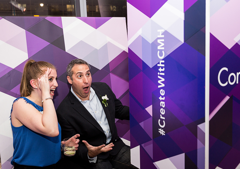 Among these installations was a seated photo booth, digital graffiti wall, and customized Snapchat filter. Once guests took photos, they could share them in real-time to their social media accounts with #CreatewithCMH via the interactive custom-designed sharing station. Guests could also draw images on the digital graffiti wall that appeared on the media wall that spanned the entire lobby.