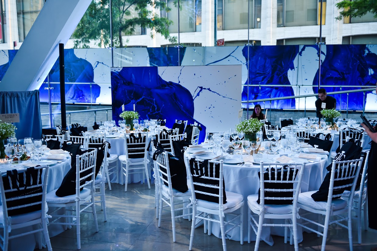 Held at Lincoln Center’s Alice Tully Hall, the evening began with guest arrivals and an elegant cocktail reception in the Hall’s outdoor sunken plaza and soaring glass atrium. Amidst a series of freestanding walls, printed with this year’s design motif, guests mingled and sipped champagne while attending celebrities walked the red carpet and posed for photographers.