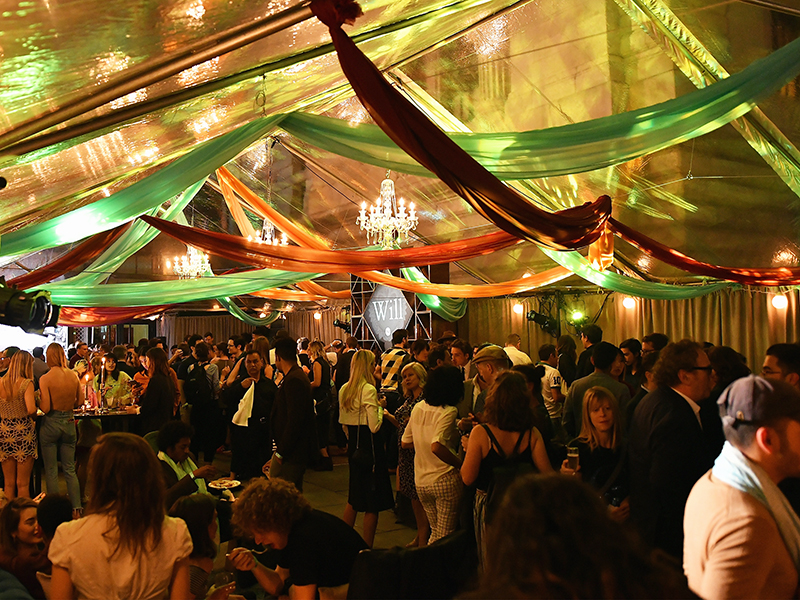 After the stage presentation, the cast and friends headed over to the Bryant Park Grill which had been tented and transformed into a festive Elizabethan party hall. Shelves stacked with books and skulls, tapestries, and British rustic furnishings were juxtaposed with posters that combined the aesthetics of Elizabethan England with edgy punkrock street art, setting the perfect tone for the party.