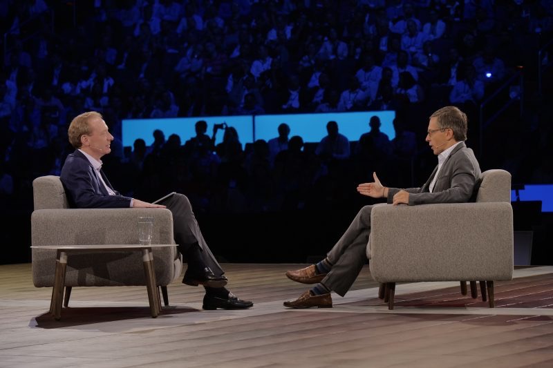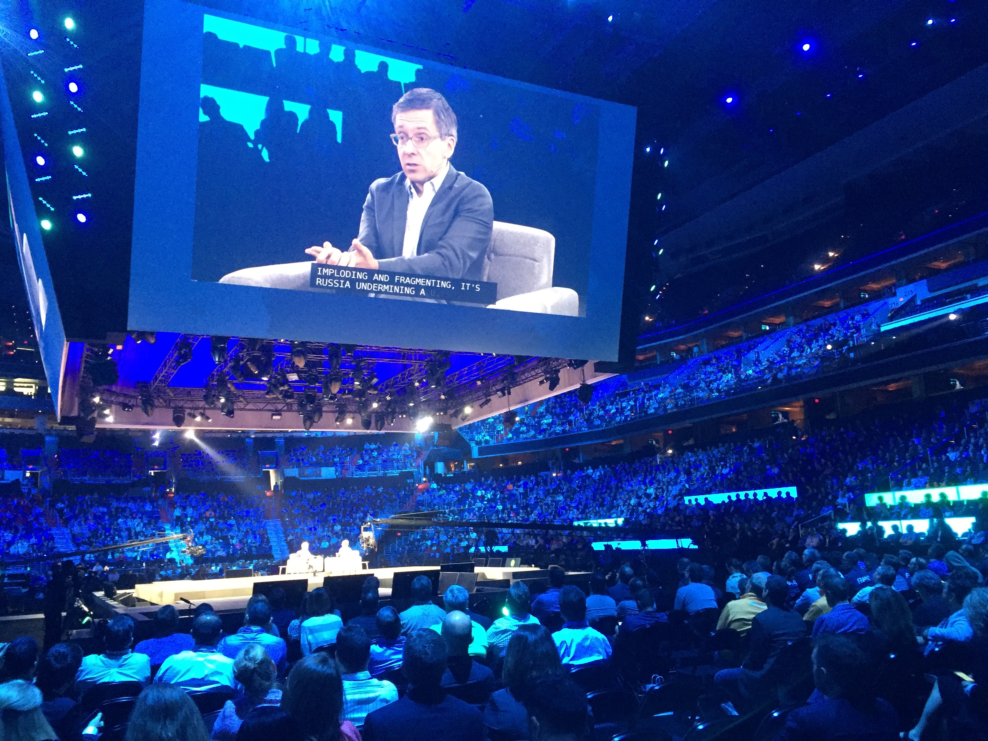 Set “In the round” at the Verizon Center in Washington, D.C., an audience of nearly 18,000 people watched as Ian Bremmer participated in a 30-minute fireside chat with Microsoft President and Chief Legal Officer, Brad Smith, discussing recent geopolitical events and the role the technology sector can play in advancing solutions to some of the world’s biggest issues.