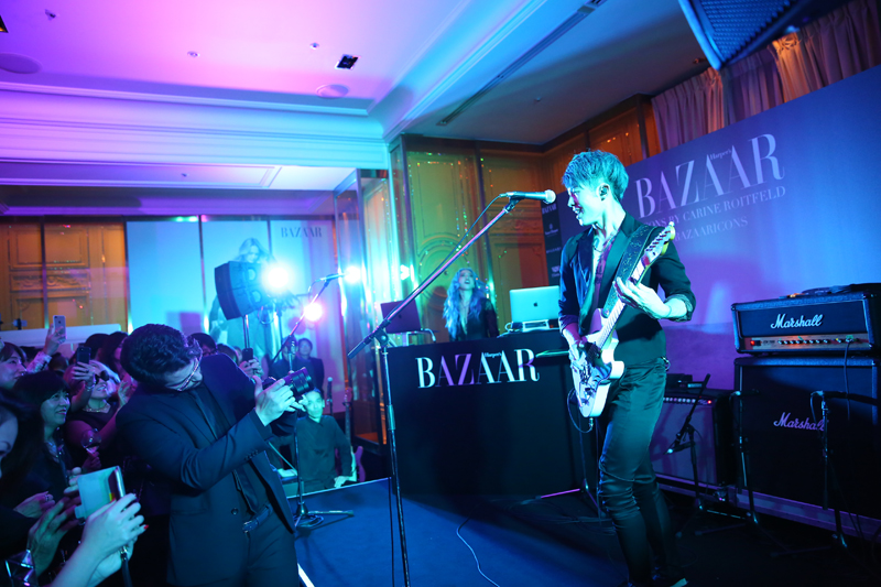 Held at the exceptional Joel Robuchon restaurant in Ebisu, top celebrities walked the black carpet while the Harper’s BAZAAR logo was beautifully displayed on the face of the building. Following the arrivals and to officially start the celebration was a toast by the BAZAAR ICONS organizer, the fashion world`s very own Carine Roitfeld. The highlight of the evening was a special performance from world-acclaimed musician MIYAVI.