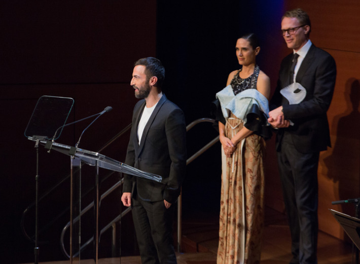 On-stage remarks were made by Steve Swartz, Glenda Bailey, Jennifer Connelly, Paul Bettany, and Nicolas Ghesquiere himself. Guests in attendance included Nicole Kidman, Jayden Smith, Michelle Williams, and Sophia Turner, among many others.