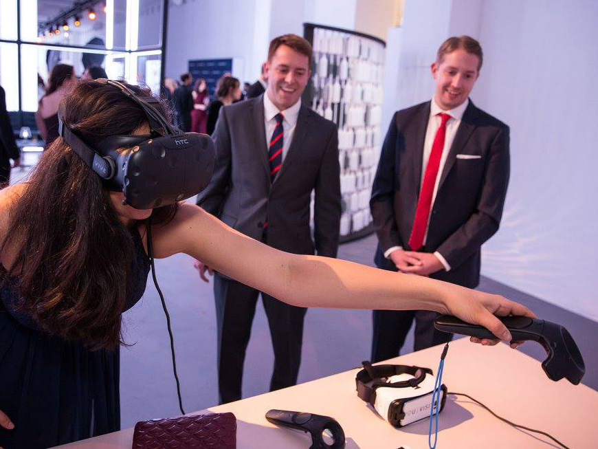 The evening kicked off at Spring Studios with a cocktail reception overlooking the heart of New York City's trendy TriBeCa neighborhood. Guests enjoyed hors d'ouevres and cocktails provided by Pinch Food design while they circulated among exhibits showcasing some of the entrepreneurial ventures their work has facilitated.