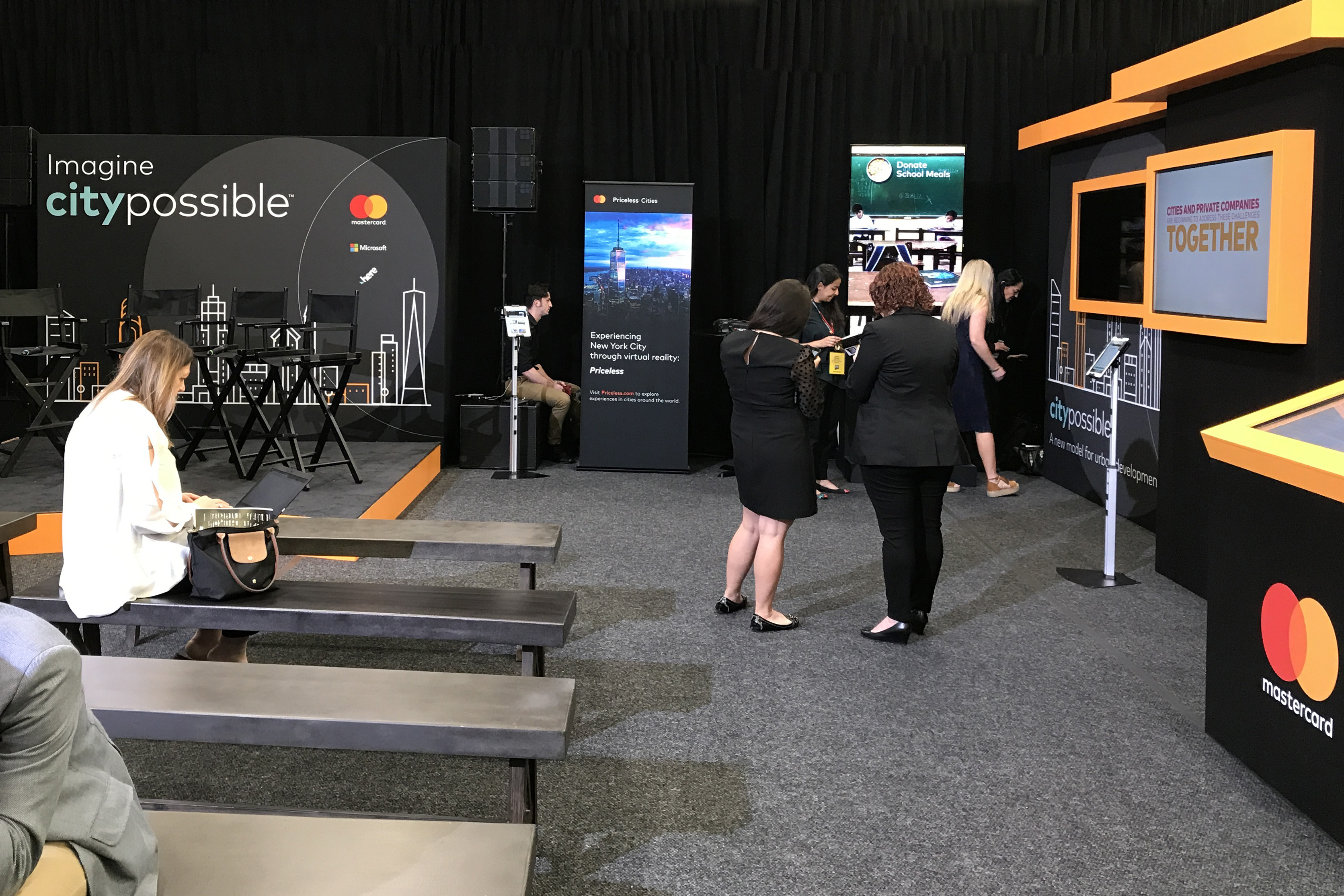 Simultaneously, an exhibit hall and B2B trade show took place which included interactive demonstrations and participation from sponsors ranging from Mastercard, Verizon, Panasonic, Hitachi, Diakin, Shimiz Corporation (TEAM JAPAN), Microsoft, Citi, Esri, Engie, AECom, Urban X, The Consulate General of the Kingdom of the Netherlands, The Consulate General of Norway, and the Consulate General of Sweden, among many others. At the expo, lead sponsor Mastercard showcased its Cities Possible program with consumer insights and real-time digital content, allowing visitors to interact with its Priceless station and VR experience.