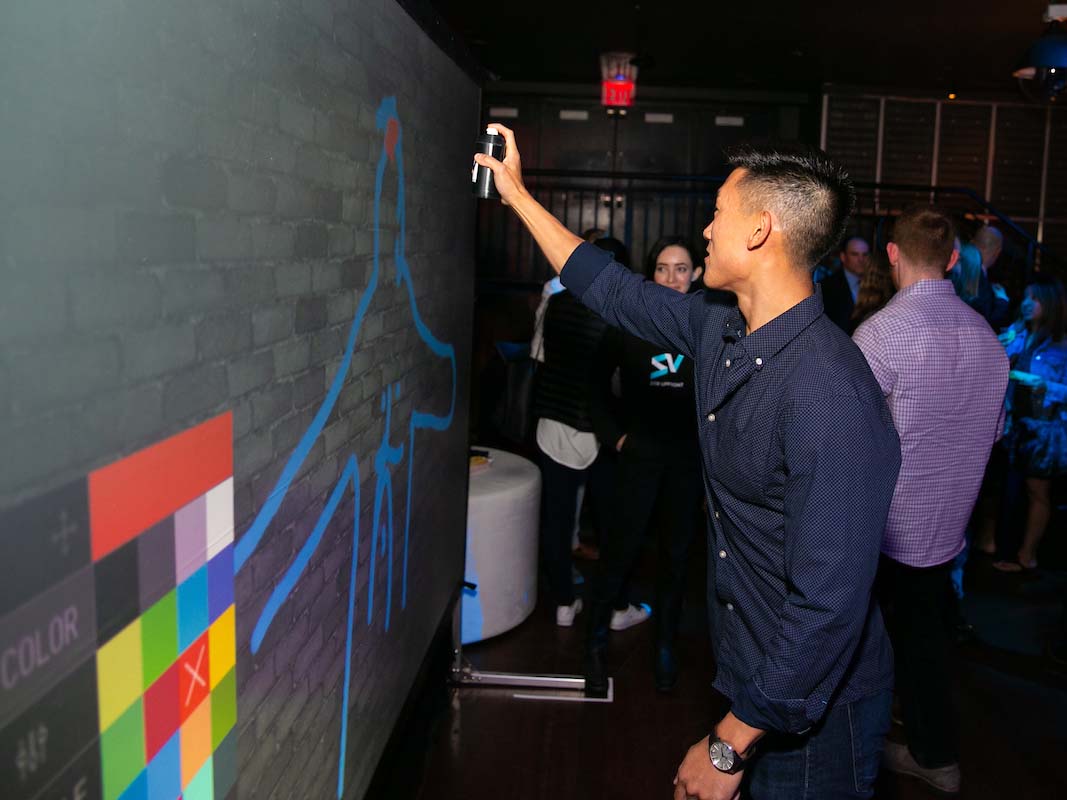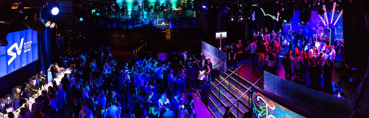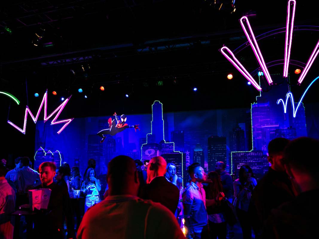 At the conclusion of the presentation came a dramatic reveal to the afterparty. Guests were welcomed to a large, inviting space featuring a central bar, innovative catering stations by Creative Edge, AR and VR activations, interactive photo booths, arcade games, and immersive, experiential activations featuring five of the largest motion picture blockbusters scheduled to be released in the coming year.