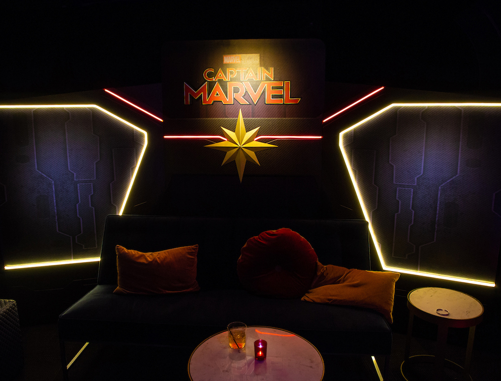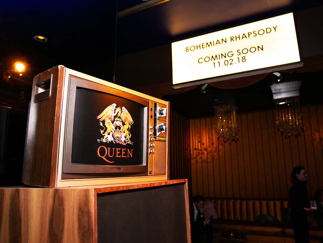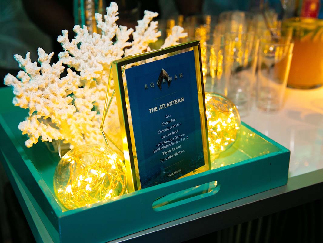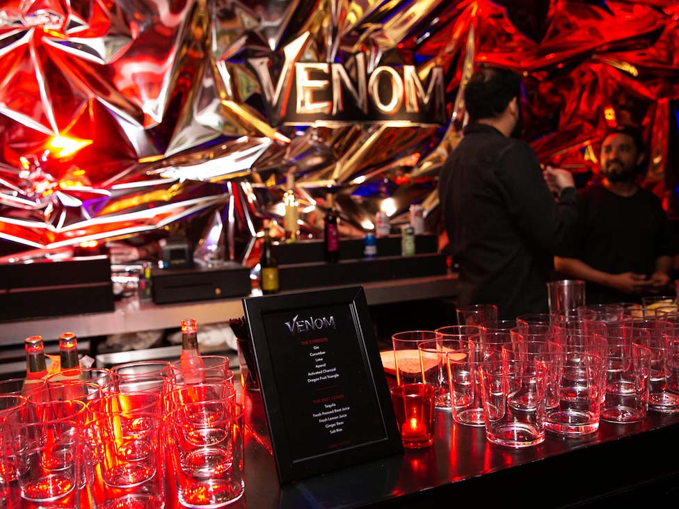 On the existing concert stage was an animated cityscape environment representing SONY’s “Spider-Man: Into the Spider-Verse” . SONY’s “Venom”, starring Tom Hardy and Michelle Williams, was represented with a vignette that enabled guests to climb aboard the actual motorcycle featured in the film and share an animated photo of themselves. Marvel Studios’ “Captain Marvel” had its own super hero lounge, while Warner Brothers’ “Aquaman”, starring Jason Momoa, had its own Aquaman-themed bar and tattoo station. Finally, Fox Studio’s “Bohemian Rhapsody” featured a lip sync booth where guests could don ’80s wigs and sing the operatic portion of Bohemian Rhapsody. Vignettes also included custom guest activities, signature cocktails, and custom t-shirt and bag screen printing.