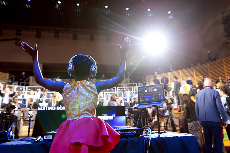 Energizing musical interstitials were provided by a cappella group, Naturally 7, and Kenyan Rapper King Kaka, along with a moving performance by Broadway star, Nicolette Robinson, to spotlight the plight of child brides. The day opened and ended with energizing performances by 10-year-old DJ Switch Ghana.