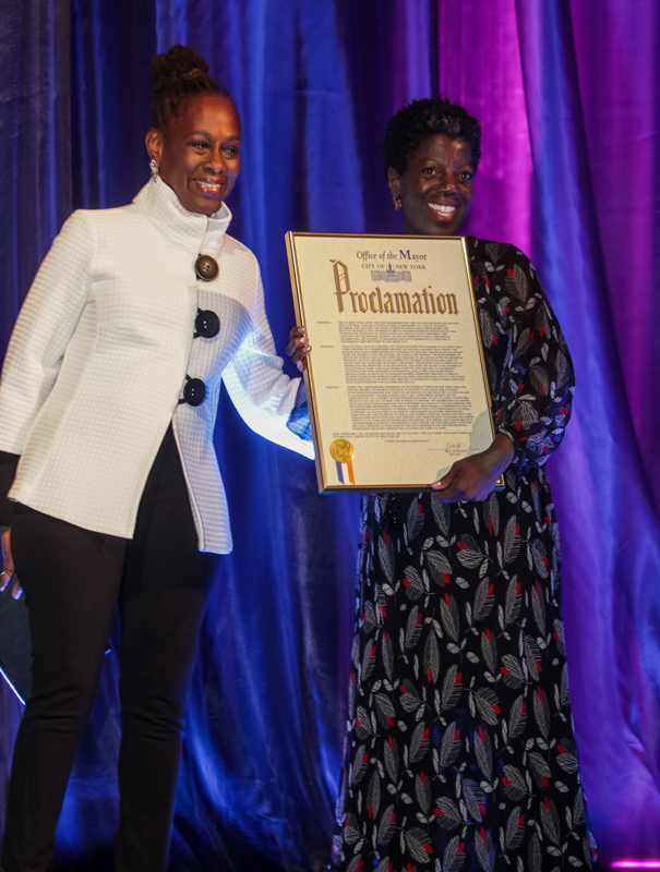 The evening’s program featured remarks by Co-Chairs Jacqueline L. Bradley, Kathryn C. Chenault, Carol Sutton Lewis, and Dr. Amelia Ogunlesi; Thelma Golden, Director and Chief Curator; and Raymond J. McGuire, Chairman of the Board. First Lady of New York City, Chirlane McCray, presented the Studio Museum with a Mayoral Proclamation to commemorate the Museum’s historic 50 year legacy. The 13th annual Joyce Alexander Wein Prize, supported by George Wein, was presented to Los Angeles-based artist, Diedrick Brackens, confirming the rise of a boundary-defying young artist who has emerged within only the past seven years. Nancy Lane, a long-time member of the Studio Museum’s Board of Trustees, and currently the Chair of the Acquisition Committee, Co-Chair of the Building Committee, Chair of the Program and Collection Committee, and a member of the Nominating Committee, was also recognized that evening.