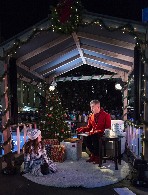 Working from an original Christmas tale, for which he contributed ideas, Alan acted as the narrator of the event and read a story to a little girl. This story was punctuated with a series of live, on-ice performances by Olympic and World Champion skaters including Johnny Weir, Meagan Duhamel, Eric Radford, Kaetlyn Osmond, and Jeremy Abbott.