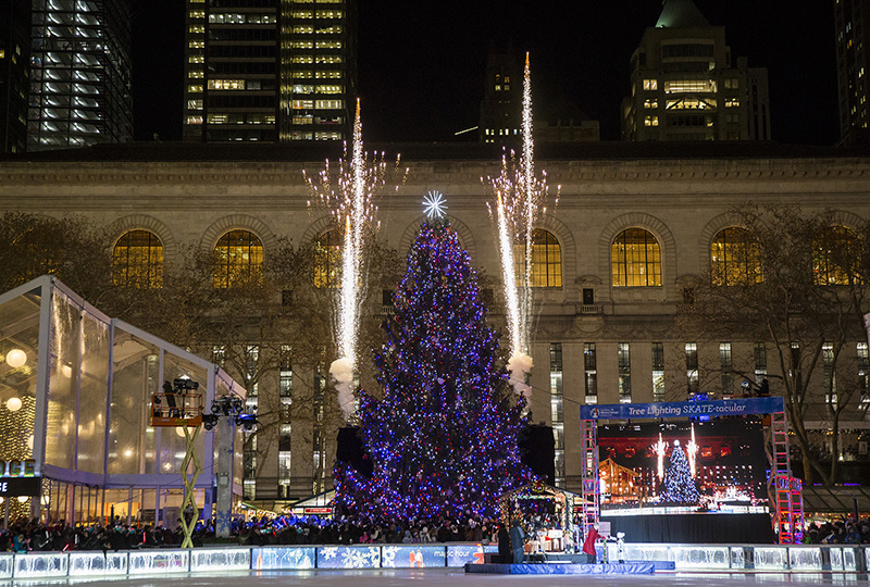 Among the many events that happen in New York City during the holidays, the Tree Lighting Skate-tacular at Bank of America Winter Villageat Bryant Park is among the most exciting and magical.
