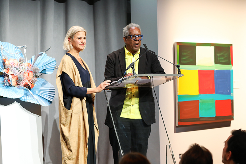 During the live program, Aileen Agopian auctioned off a spectacular selection of artworks courtesy of some of the world’s most renowned artists, including Jenny Holzer, Kenny Scharf, Ed Ruscha, and the night’s honorees, Marina Adams and Stanley Whitney.