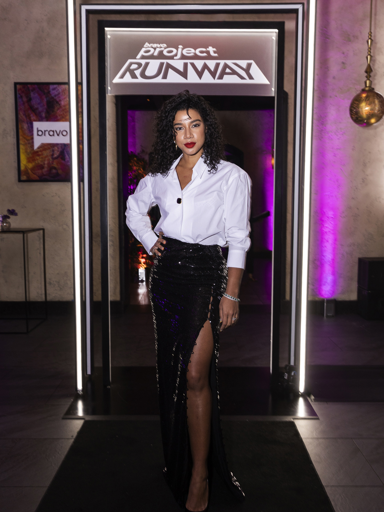 The momentous premiere was celebrated by the show’s judges Karlie Kloss, Christian Siriano, Brandon Maxwell, Elaine Welteroth, and Nina Garcia at Vandal in New York City. Drawing inspiration from the venue’s decor featuring world-renowned street artists, Empire designed five rooms with creative and bold activations for the 250 guests to explore. Upon entry, guests were immersed in a funhouse-inspired checkered room with Bravo’s Project Runway logo stretching across the wall in black and white. Once inside, a hallway of dress forms inspired by those used in the show drew guests into the main event spaces.