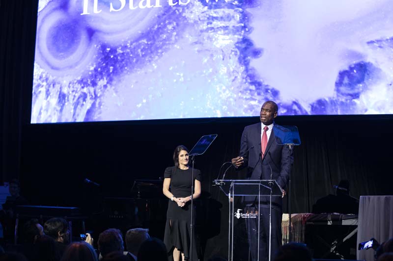 During the program and seated dinner, which was hosted by ABC’s Ginger Zee, Smile Train CEO, Susannah Schaefer, delivered moving remarks about the huge impact that proper care has on a child with a cleft. Chairman of Smile Train’s Medical Advisory Board, Dr. Larry Hollier, Miss Universe Organization President, Paula Shugart, and Top Chef’s, Graham Elliot, were all honored for their philanthropic efforts, while retired NBA player, Dikembe Mutombo, was recognized for his humanitarian work. The program also included a moving tribute to Smile Train Founder, Charles B. Wang. Other program highlights included appearances by Miss Universe 2015, Pia Wurtzbach, Miss USA 2015, Olivia Jordan, and a lively auction conducted by Paul Florez.