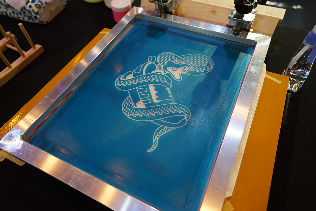 Inspired by the design of their latest footwear, the “NMD_R-1 G-SNK”, a glow-in-the-dark all-over snakeskin prime knit, an installation was created that swallowed visitors with designs of phosphorescence snake motif. Including this unique experience, the first 200 people who purchased the shoes & t-shirt set were gifted a silk screen designed tote bag.